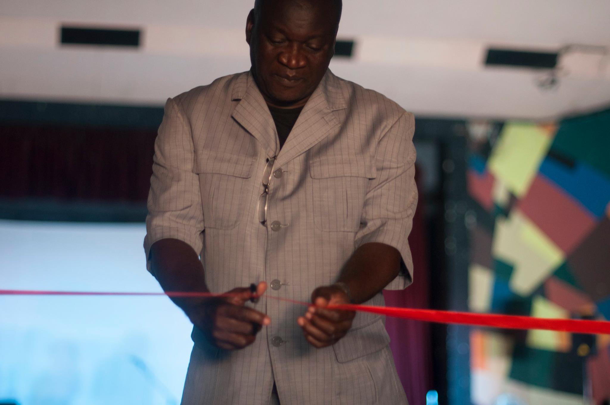 Niels-Peter Hedegaard from OpenChurch in Denmark gave a short greeting during the service, and we had our “Senior Supporter” (as he likes to call himself), Ngoie Mwilambwe, to cut the red ribbon as we went out of church and into our mission field.